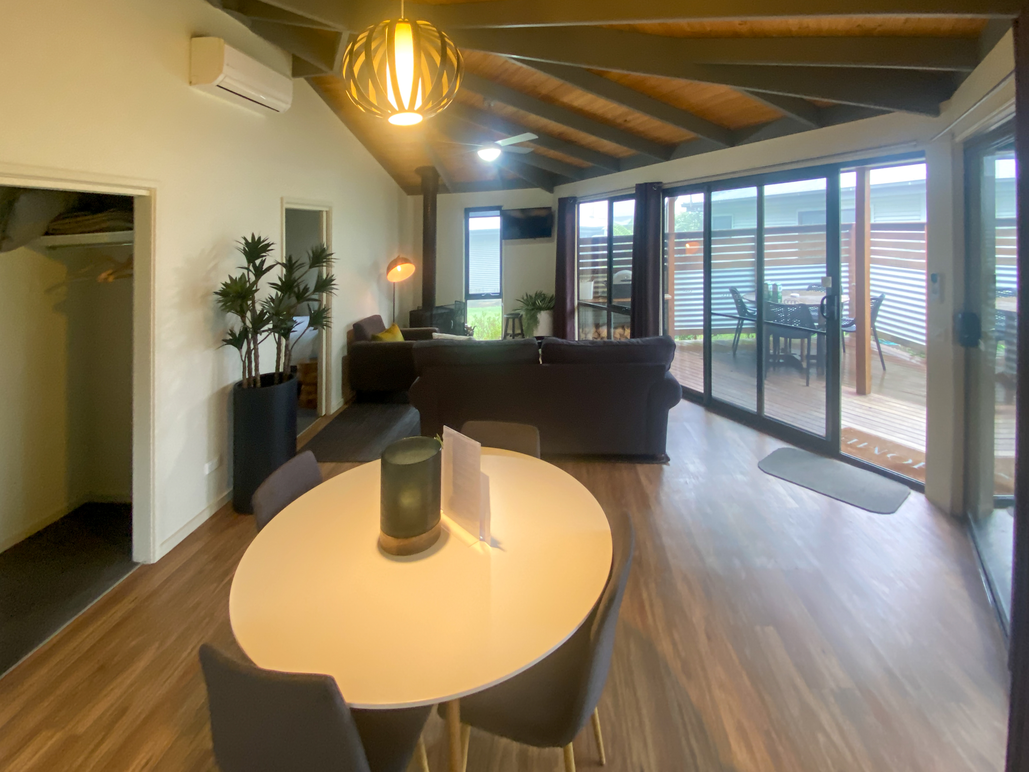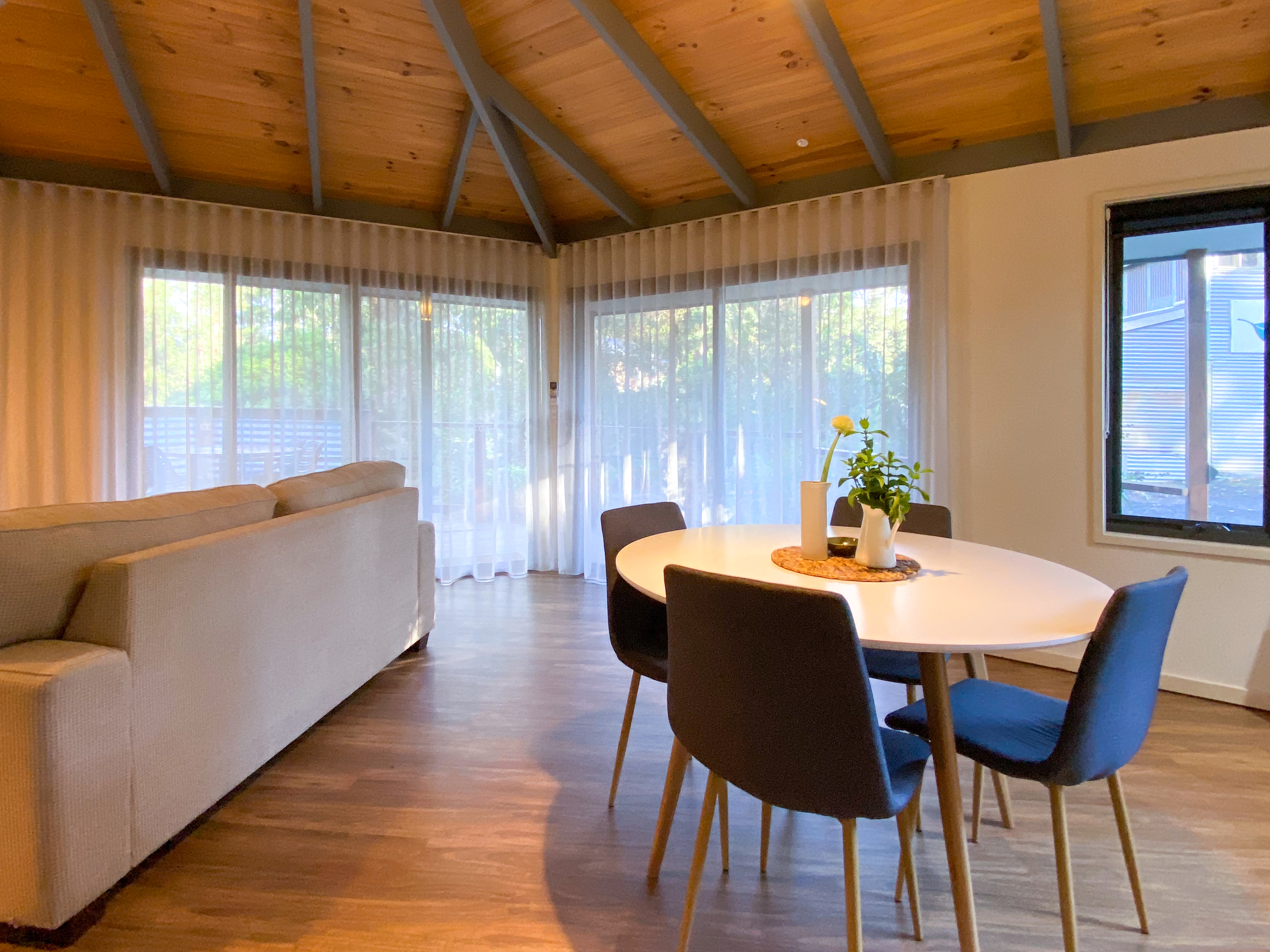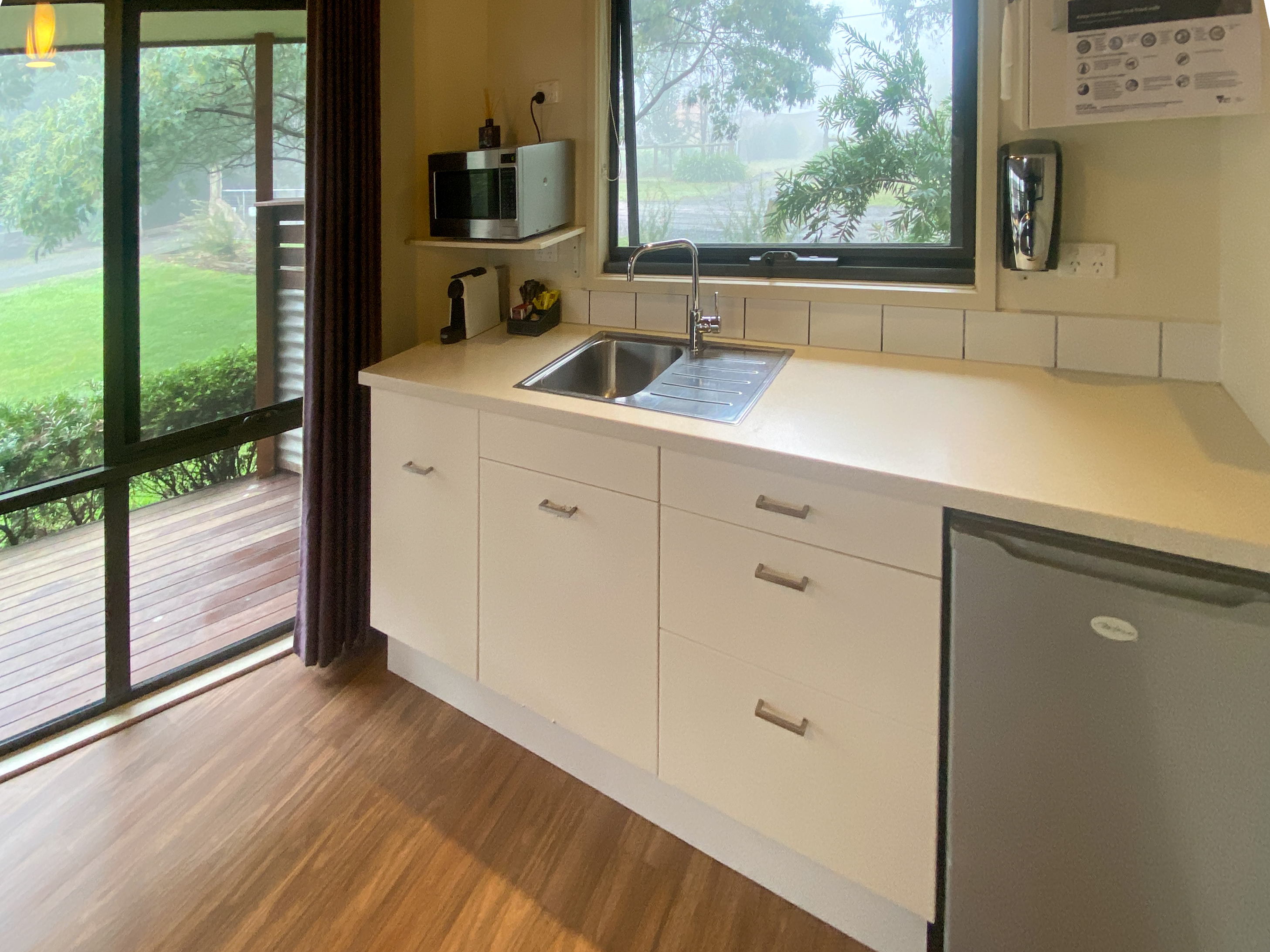 - Full equipped kitchen with oven and stovetop, full sized fridge and lots of bench space where you can prepare and make meals if you wish.